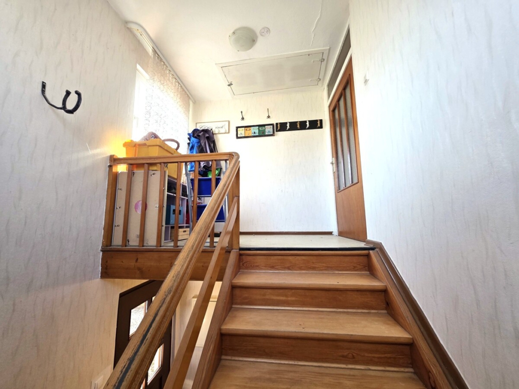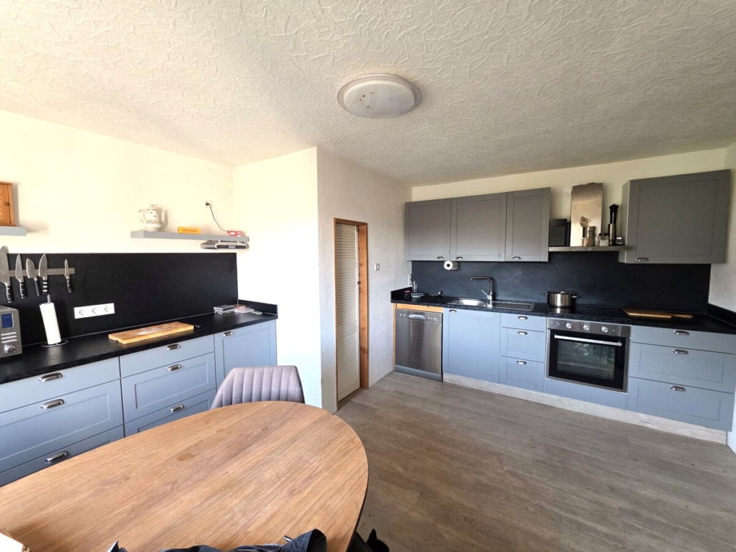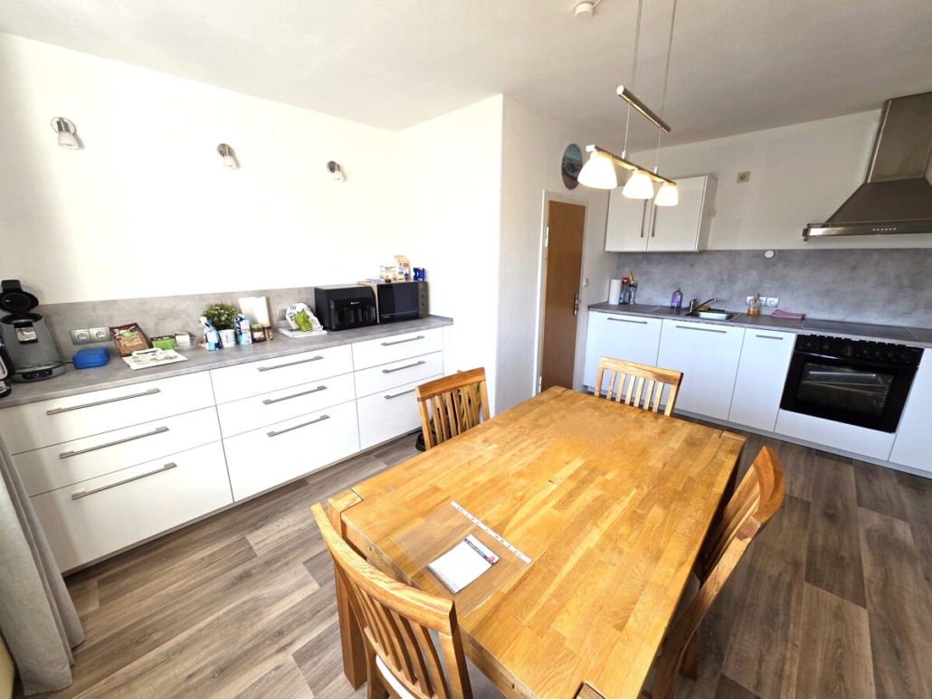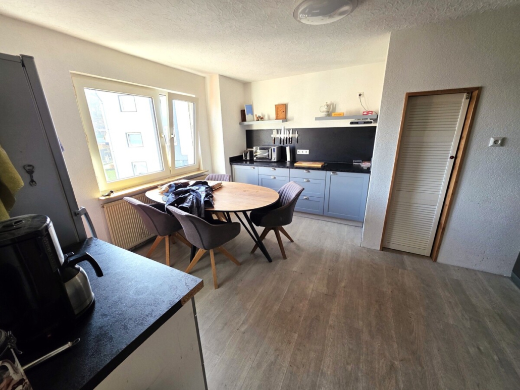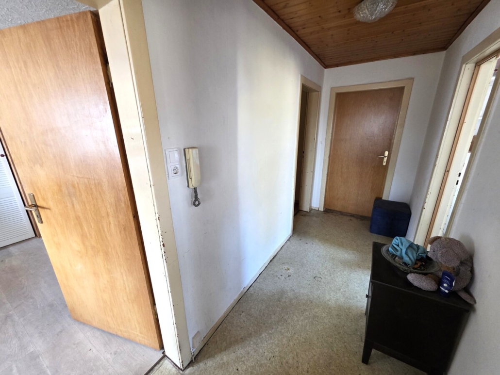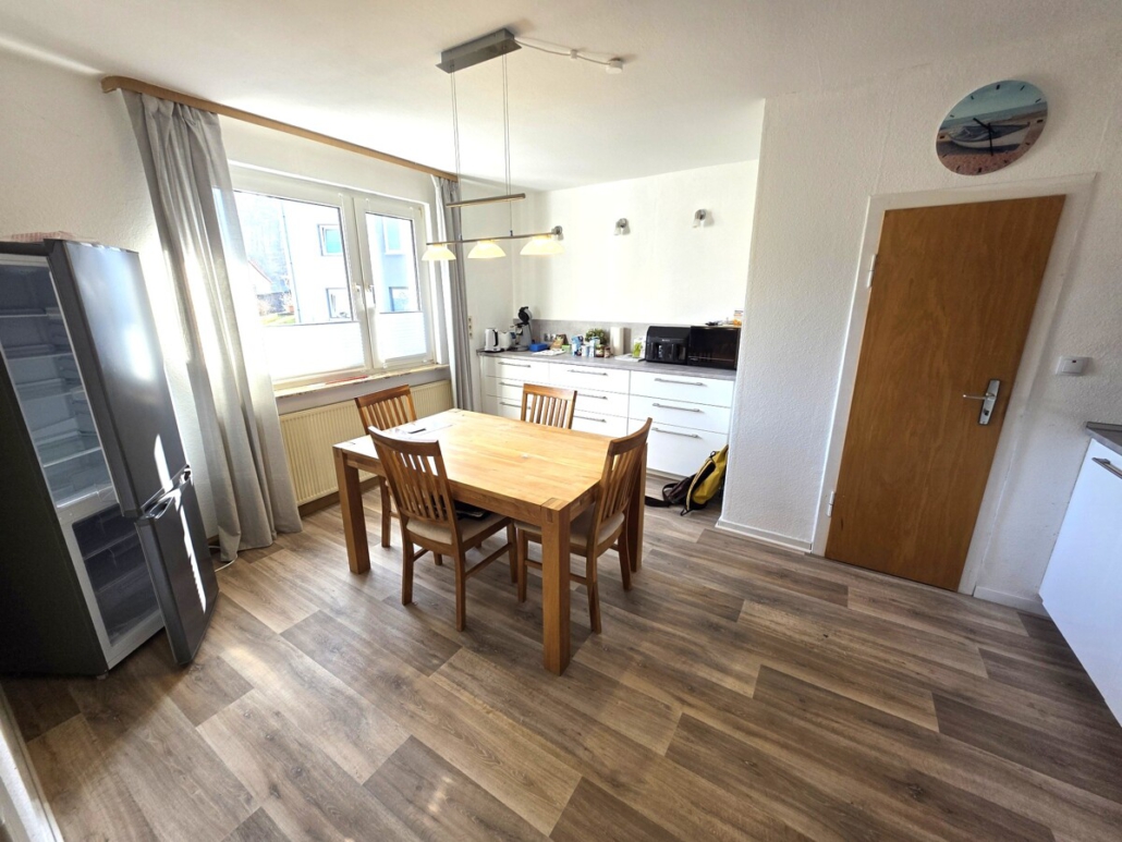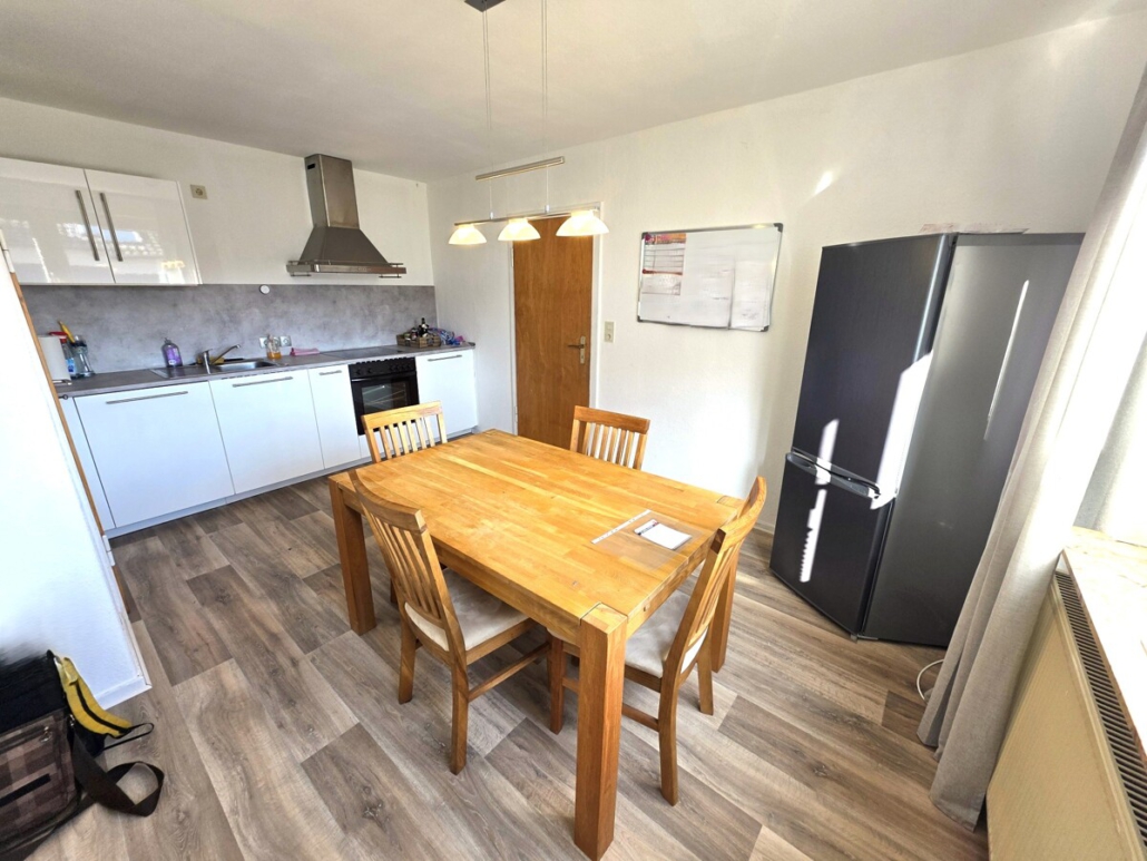 Hier liegt eine 3 Zimmerwohnung mit einem Wohnzimmer, 2 Schlafzimmern, einem modernisierten Bad mit Badewanne und einer Küche mit Speisekammer.