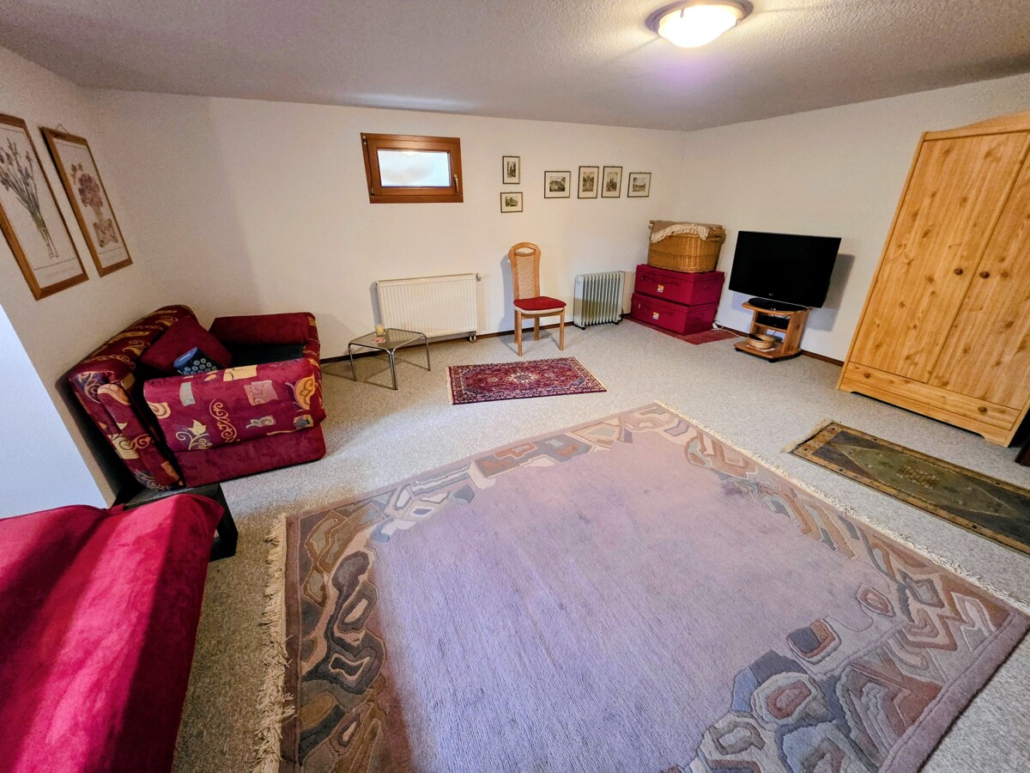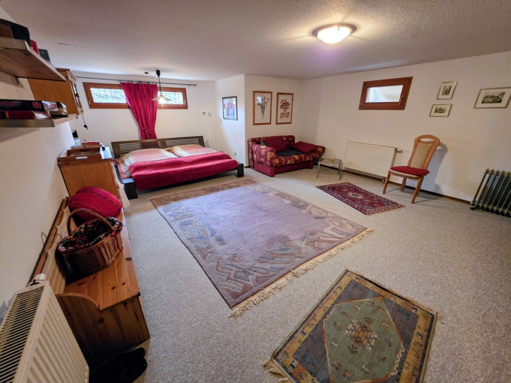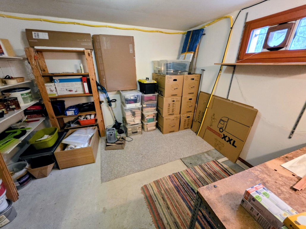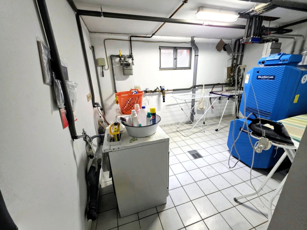 Im Kellerbereich befinden sich ein Hobbyraum, der als Gästezimmer genutzt wurde, sowie ein weiteres Duschbad. Zudem finden sich auf dieser Ebene die Waschküche, in der auch die Heizungsanlage verbaut ist und 2 Vorratsräume. Es gibt einen direkten Ausgang zum Garten.
