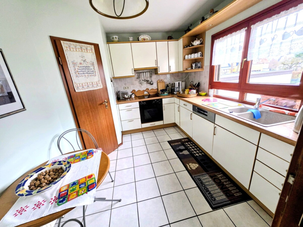 Im DG ist ein weiterer, voll nutzbarer Wohnbereich mit einem Schlafzimmer, einem Wohn-/Esszimmer mit Zugang zum Balkon, einem Duschbad und einer Küche mit Einbauküche.